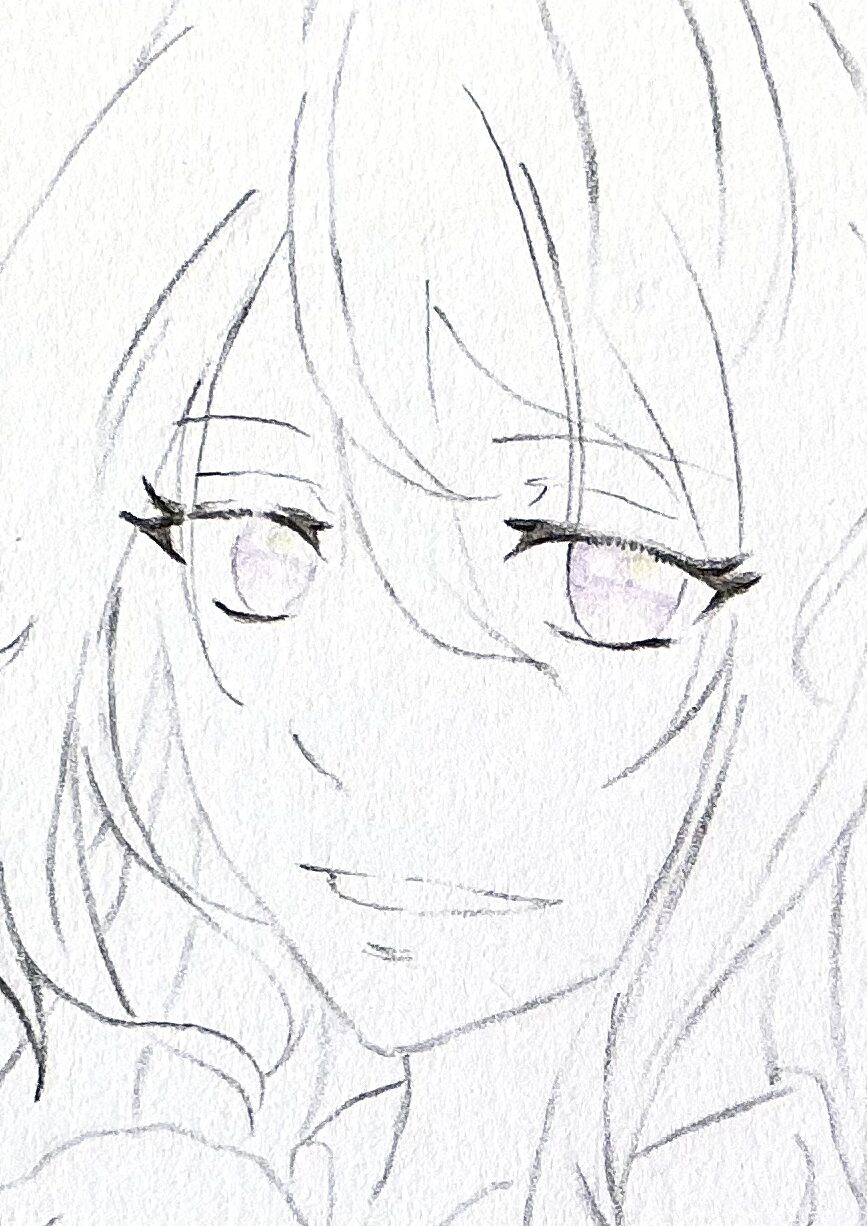 黒色で瞳の輪郭線をなぞったりして、少し色の強弱をつけました。