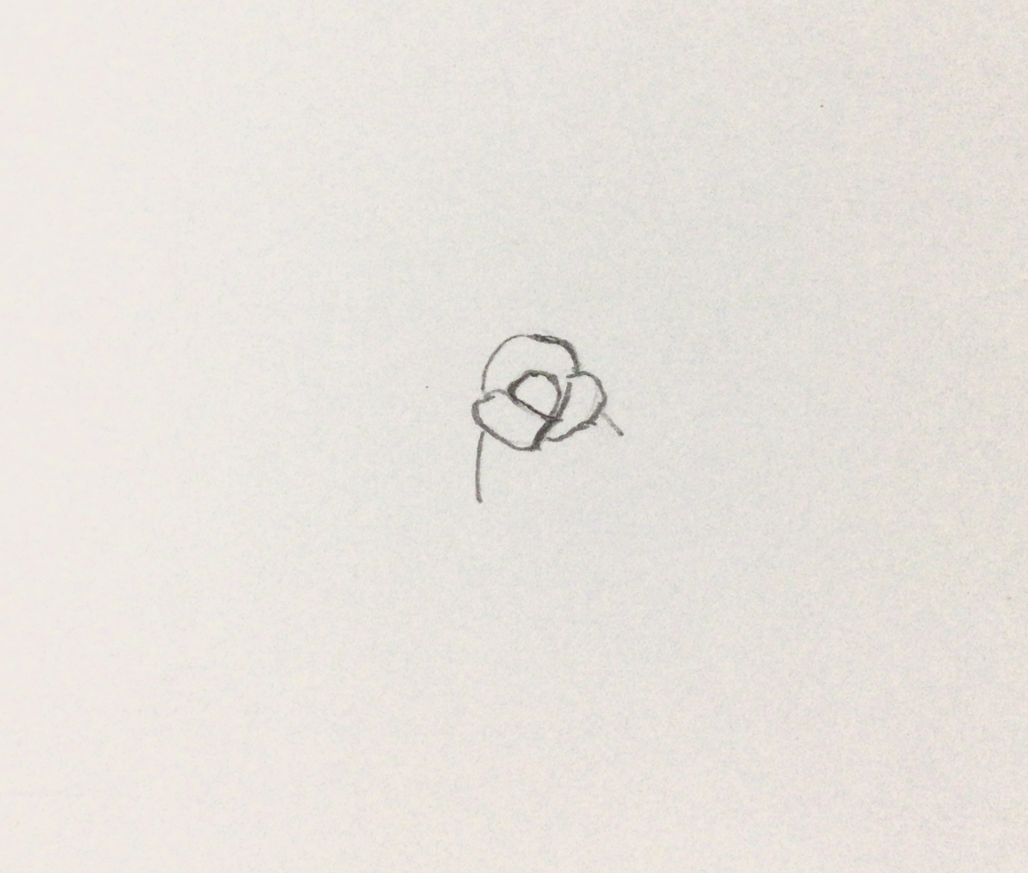 薔薇の中心から下に向かって線を描きます。薔薇の蕾みたいな芯を意識して描くような感じです。