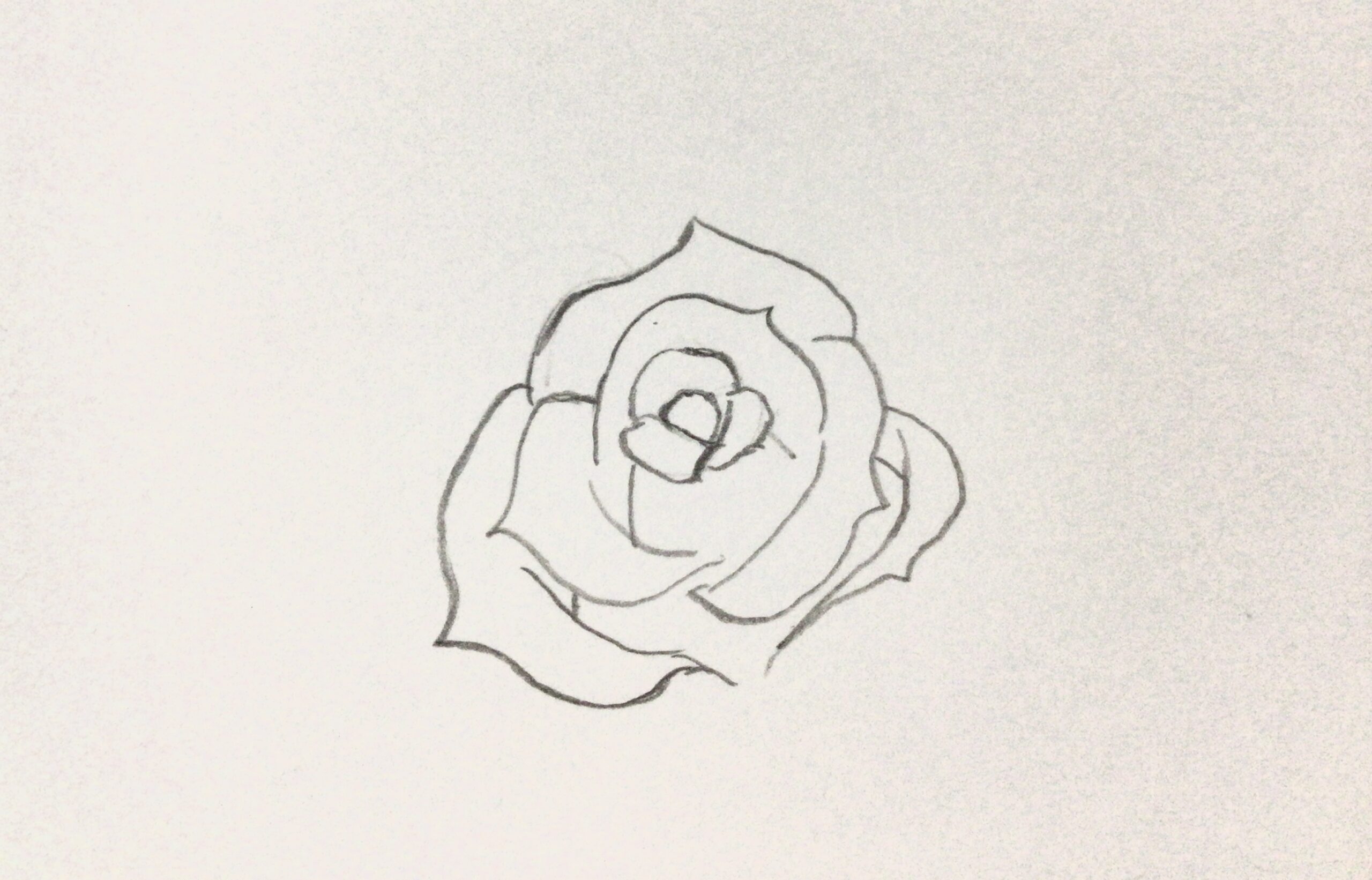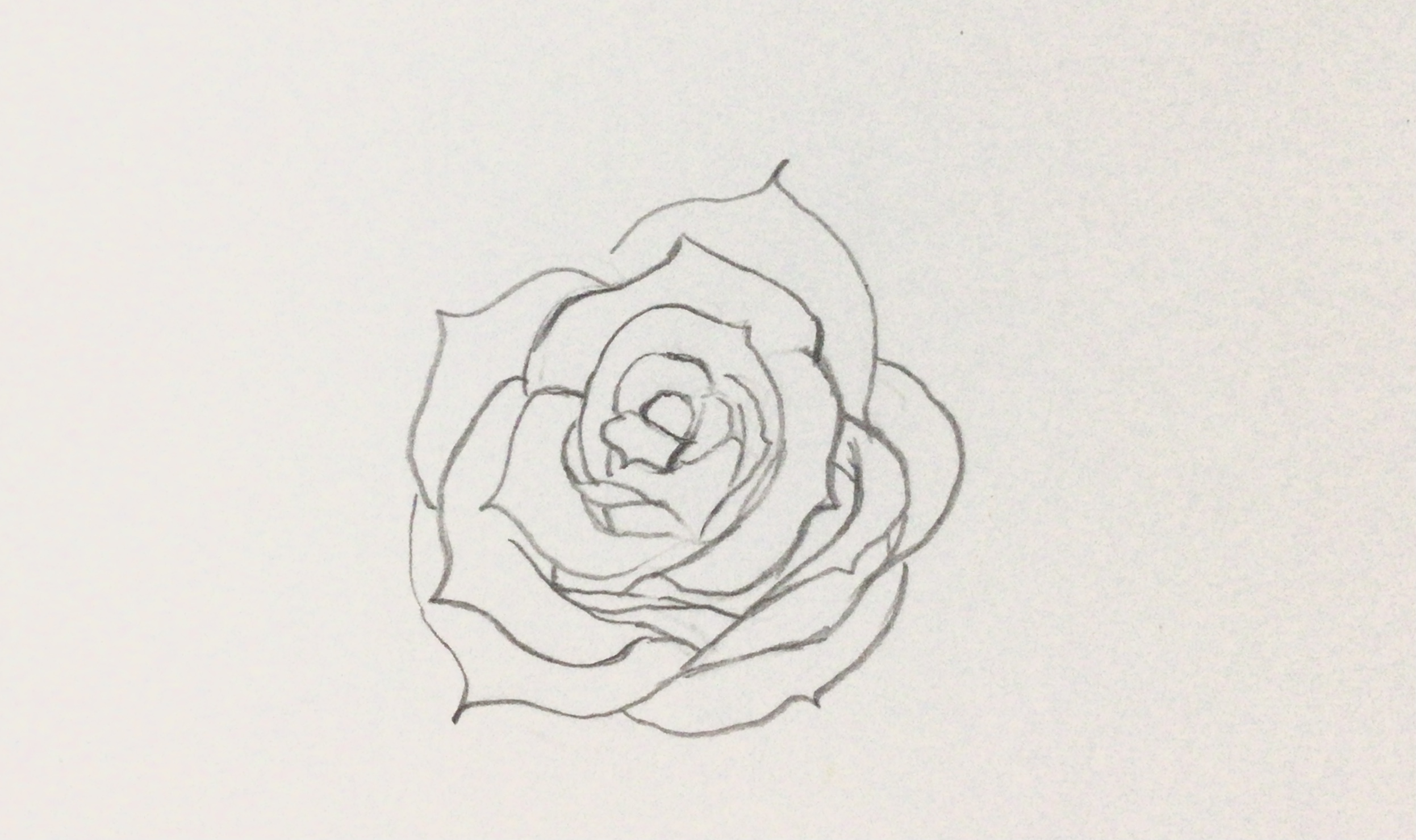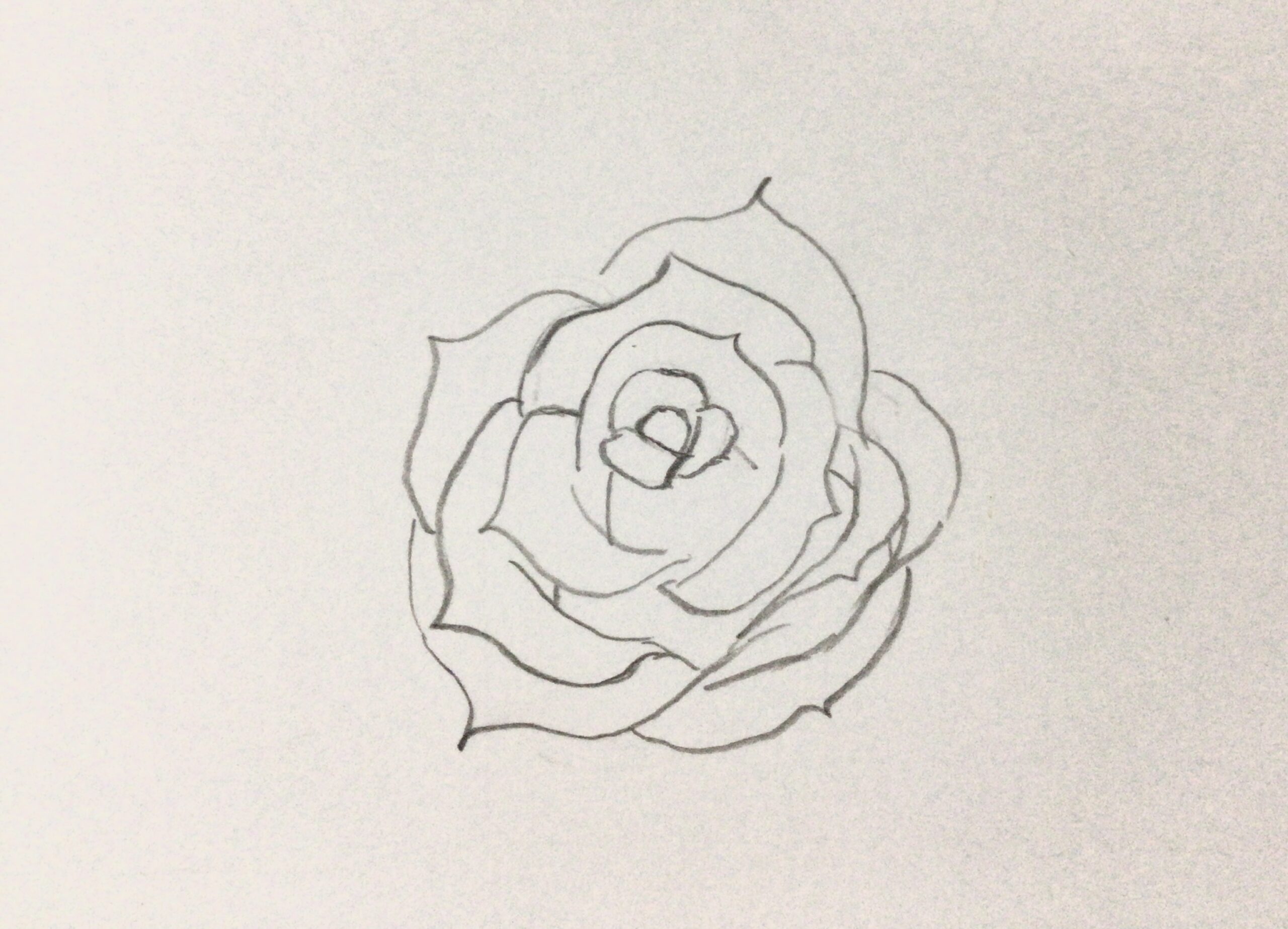 薔薇の中心を描きます。今回は少し斜め上から見た状態の薔薇を描いています。