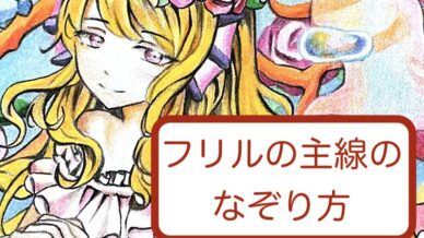 フリルのイラストを色塗る時、フリルの主線をなぞる過程をご紹介しております。